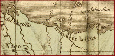 En este fragmento de el Mapa de Buchon, J. A. C. donde se puede ver la ubicación de El Triunfo de la Cruz y el poblado de Naco